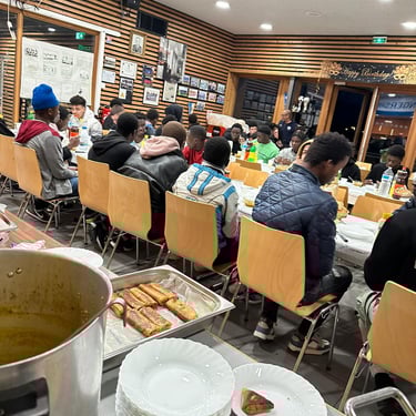 Découvrez nos actions humanitaires durant l'hiver 2024 secteur Mulhousien, distribution alimentaire aux étudiant. Cette opération était en partenariat avec le FC Kingersheim. Nous sommes venus en aide à 80 mineurs dans le besoin et pour certains sans parents. Ils étaient hébergés à l’association le foyer le Kaligone à Kingersheim. Nous leur avons fourni un repas pendant tout le mois du ramadan, ainsi que de la chaleur humaine et de la convivialité.